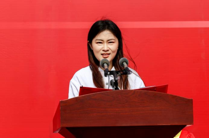 通识教育学院教师孔琳作为教师代表对2025届毕业生表示祝福。她希望学生们将个人梦想与民族复兴相结合,以坚定的信念在时代中前行,并鼓励学生们把个人奋斗,融入家国事业,带着母校赋予的精神力量,奔赴时代征程,让青春在奉献中闪光。