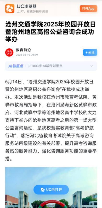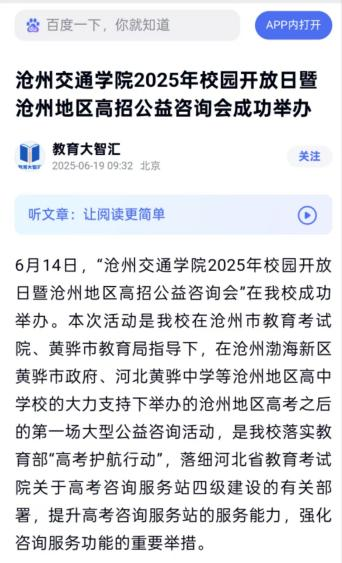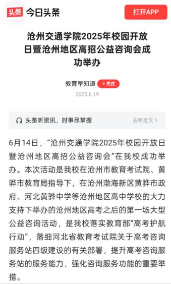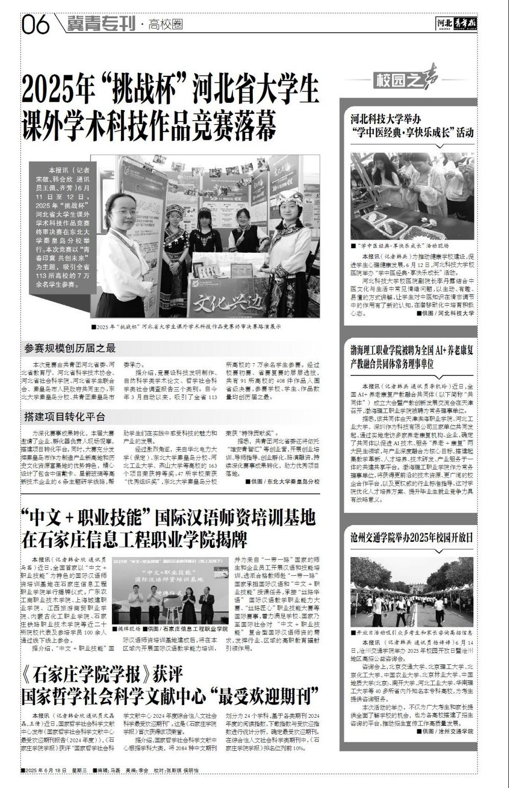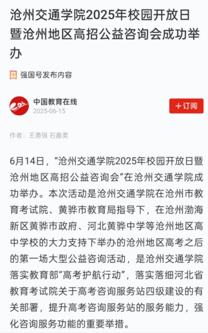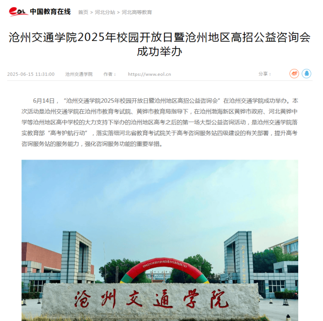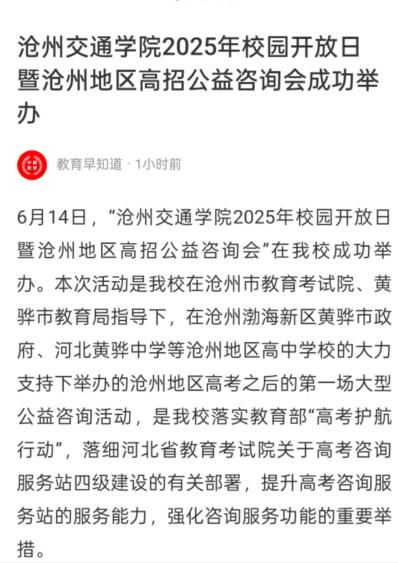 近日,河北卫视《你好京津冀》和《冀时全播报》、河北公共频道《新闻6号线》、中国教育在线、中国网、河北青年报、百度、今日头条、一点资讯、搜狐等主流媒体平台报道ac米兰2025年校园开放日暨沧州地区全国高校公益咨询活动。
