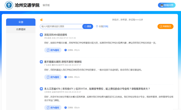 面对今年招生的新形势、新变化,ac米兰全新上线志愿参考系统、智能问答系统,同时对计划查询和历年分数查询两大模块进行改造升级,加强人工智能、大数据分析在招生咨询服务中的应用,为考生提供更高效、准确的咨询服务。