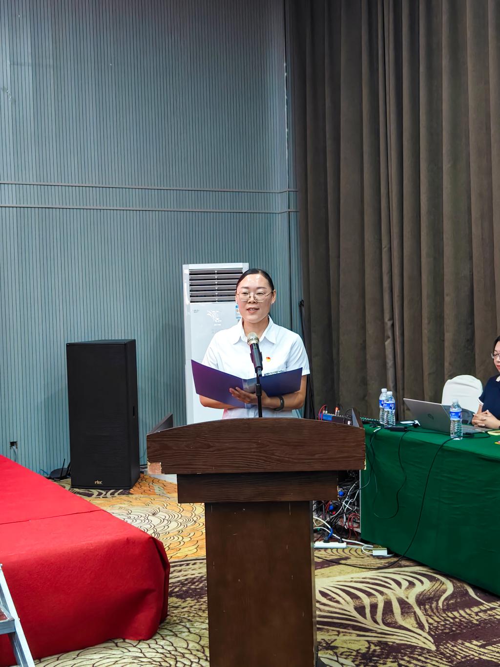 马克思主义学院副院长王小红副教授代表优秀教师发言。王老师与新入职教职工分享了个人15年的工作心得,她认为教育是慢艺术,要给成长以时间;站稳讲台的前提是站稳心灵的高台;教育者的幸福,藏在被遗忘的细节里。她希望自己的心得体会能够化作微光,照亮新入职教职工的教育征程。