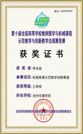 在此次高规格竞赛中,ac米兰机械与动力工程学院教师表现亮眼,分获两大赛道奖项:在“图学微课示范教学创新赛道”中,封旭佳老师获二等奖,陈华宇老师获三等奖;在“机械微课示范教学创新赛道”中,张志芳老师获二等奖,李永越老师、周美玲老师均获三等奖。
