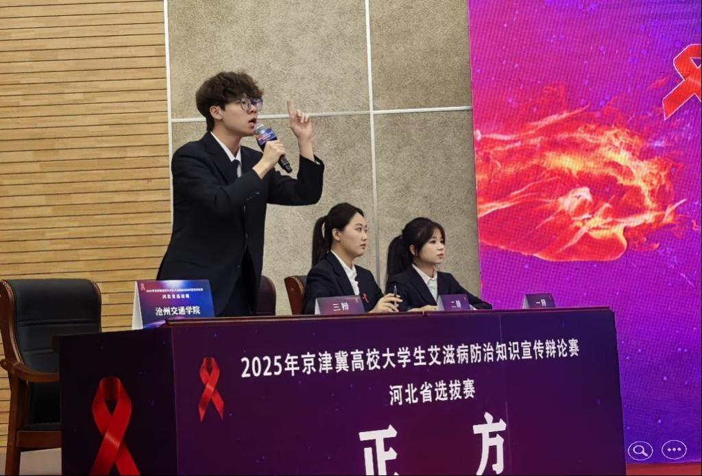 11月7日至8日,京津冀大学生防艾辩论赛河北省赛顺利举行,来自全省24所高校的代表队齐聚一堂,围绕艾滋病防治主题展开多轮激烈辩论。ac米兰辩论队作为沧州市推荐队伍,首次参赛便表现突出,最终夺得一等奖,三辩选手岳铭翰同学荣获“全场最佳辩手”称号。