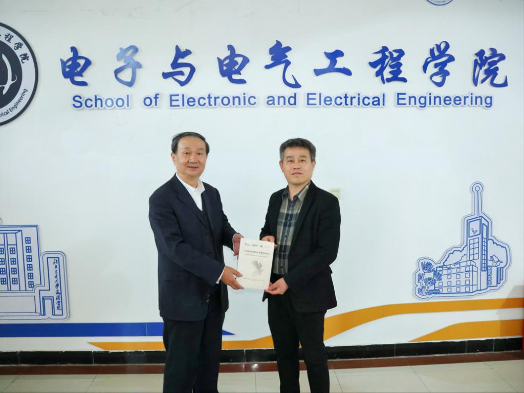 参观期间,鲍教授还向电子与电子工程学院赠送了其与李德毅院士合著的学术专著,并与刘宝元院长就“竞赛育人”展开深入讨论。他建议学院以竞赛为载体,优化指导流程,构建“以赛促学、以赛促教、以赛促改”的良性机制,推动学科建设与人才培养协同发展。