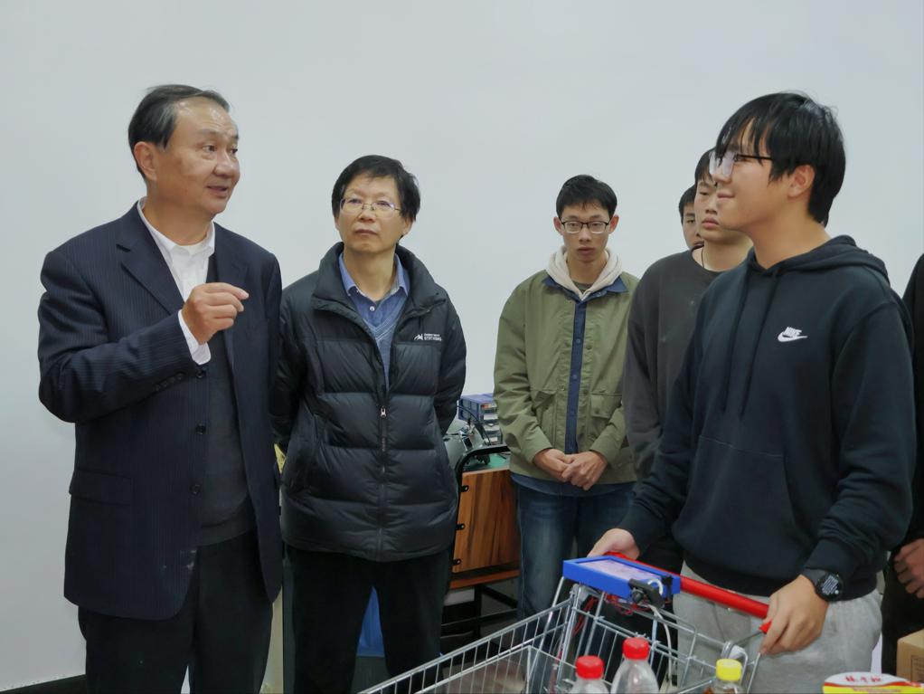 报告会后,鲍泓教授在电子与电气工程学院院长刘宝元、实验实训管理中心副主任杨金祥等陪同下,参观了学院实验室,深入了解学生备赛情况,并与参赛学生亲切交流。他针对作品设计提出改进建议,并鼓励同学们珍惜学院资源,注重团队协作,勇于创新,在实践中锤炼能力,成长为具备核心竞争力的高素质工程技术人才。