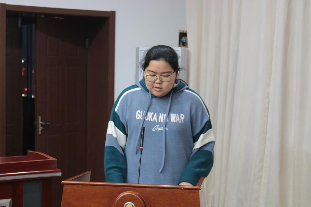 获奖学生代表财务1805班学生陈阳发言。她向在场的指导教师、组员以及学长们表示衷心的感谢。陈阳表示,获奖不是竞赛的目标与目的,只是前进道路上的小成绩,是对日积月累学习成果的检验。最后,她立志日后要以更高的标准要求自己,时刻谨记往日的成绩只代表过去,愈加努力,在未来遇见更好的自己。