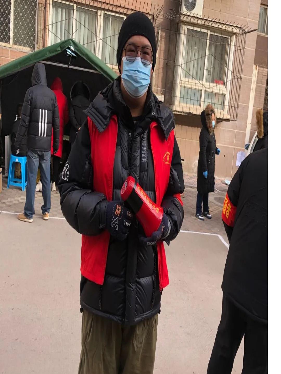 艺术学院环境设计2002班于宸蘅同学作为志愿者,在小区门口对进入小区的车辆和外来人员进行登记和体温检测。他谈到,身为蝼蚁当有鸿鹄之志,作为一名大学生,应有责任与义务奉献自己;作为青年志愿者,应该尽自己一份力量,为家乡抗击疫情做出自己的贡献。他希望早日能够战胜疫情,为河北加油,为中国加油!