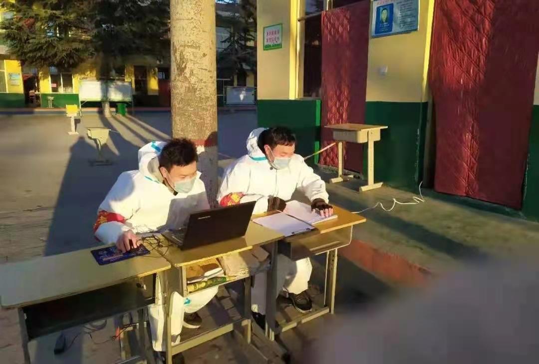 计科1902班袁世鹏同学积极参加抗疫志愿者队伍,负责全村核酸检测人员的记录工作。他说:“我们的岗位也许普通,也许平凡,但是在抗击疫情的战线上离不开志愿者们的无私奉献!隔离病毒,但不隔离爱,待到春花烂漫,你我相聚可期!”