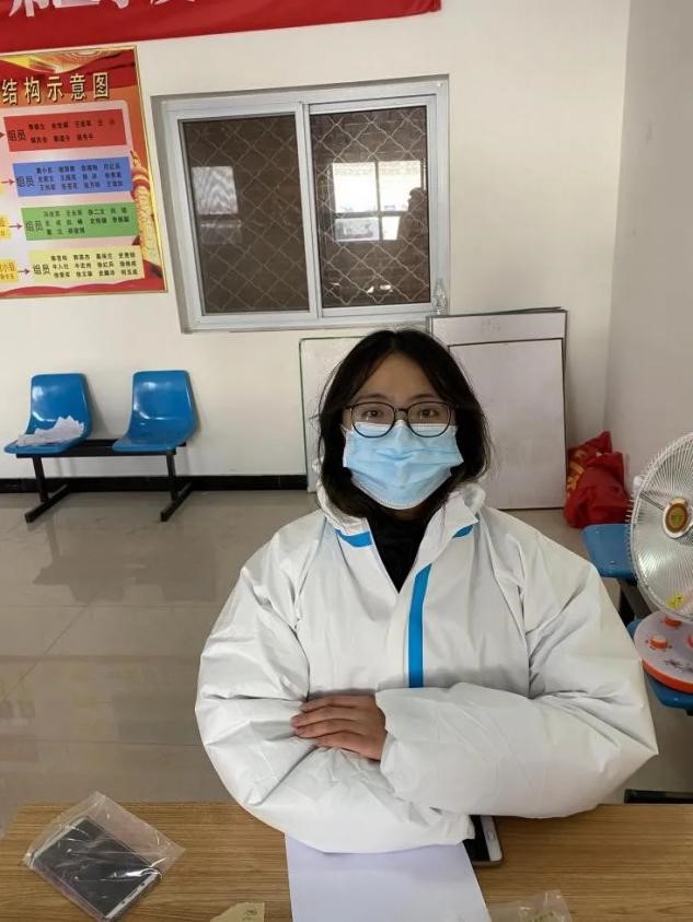 工程造价2002学生刘佳宁主要为居民进行体温测量,对小区进出人员登记个人信息等工作。她说:“疫情突发,作为当代大学生,有责任和义务为自己的家乡做力所能及的事情,为社会疫情防控尽自己一份力量。我希望早日战胜疫情!”