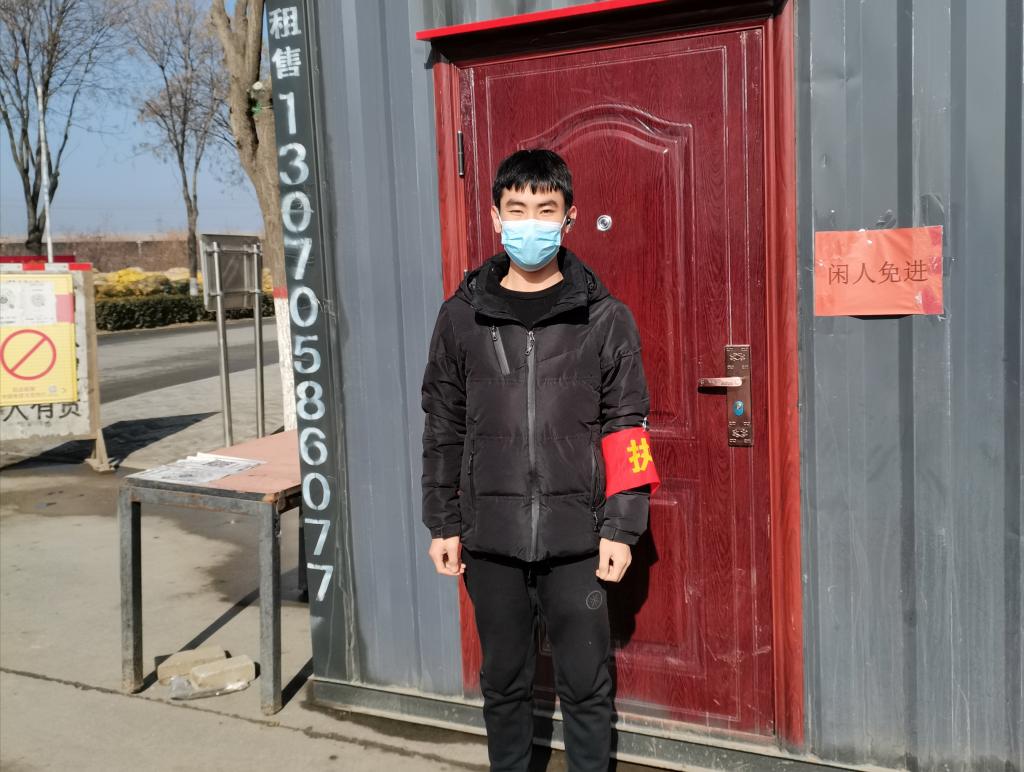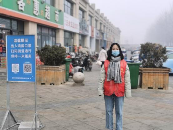 化工1701班杨晶晶同学自愿参与到本次的疫情防控工作中,主要负责卡口值班和居民信息的登记、核对等工作。她说:“身为一名大学生预备党员,我应该在这场疫情阻击战中发挥自己的长处,起到带头作用。”她认为,卡口值班最大的困难就是天气寒冷,即使穿了很厚的衣服也能感受到刺骨的寒风,但小区的住户们对防疫工作的配合与暖心的感谢给予她抵御寒冷的力量。