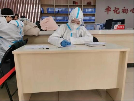造价1902班白慧同学主要负责居民信息的统计校对,市区外来人员的登记备案和信息统计,病毒采样管标号等工作。她说:“我深知新冠病毒的再次来袭是一场更加严峻的考验,但是我毫不犹豫地再一次参加到全民抗疫的队伍,再次为抗击新冠疫情贡献自己的力量。”