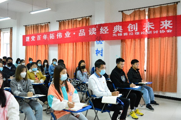当天下午,读书分享会在大学生活动中心106室举办。学生处处长王庆松在读书会上分享了《苦难辉煌》一书。他讲述了中国红色政权发展的不易以及面对苦难时中国共产党人忘我奋斗的经历。他将历史与当今中国的具体实际相结合,指出当今中国的发展虽取得了显著成就,但也面临着很多挑战,而这些挑战需要每一个中华儿女迎难而上、努力克服。他希望同学们不忘历史,不忘来路,扛起家国责任,努力奋斗。
