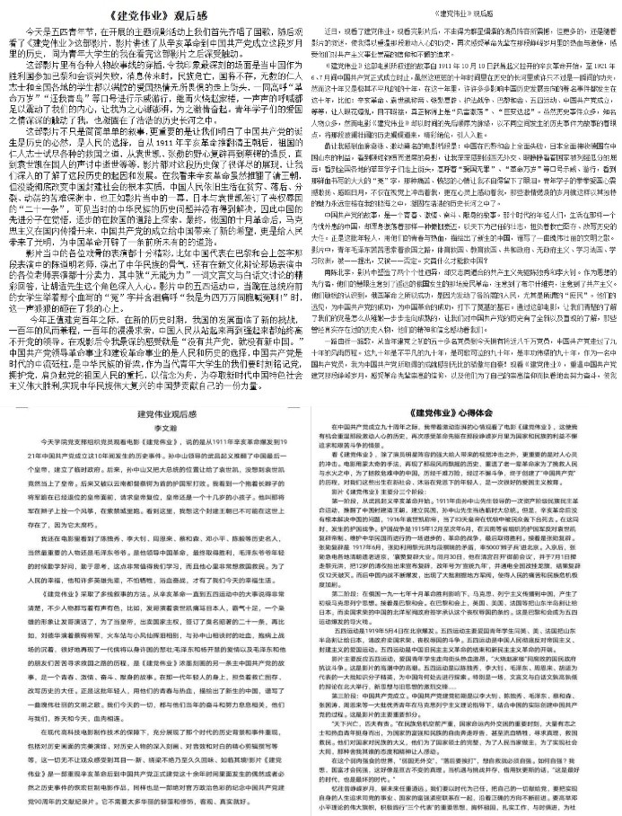 此次观影活动的开展,不仅有利于加强同学们对党史的了解,也加深同学们对历史的记忆,提高同学们对党史学习的积极性。悠悠百年是考验,砥砺前行是态度,而我们想对党说:“初心少年,向阳而生,你的出现就如同灯塔一般照亮了我们国家前行的道路,引领着中华民族屹立于世界之林,百年不过赴约期,少年中国,百年共产党已崛起。”