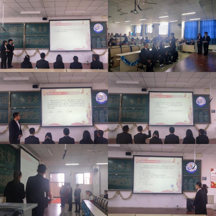 本次决赛分为狭路相逢勇者胜、步步为营抢答题和激流勇进风险题。比赛由抽签决定参赛分组以及答题顺序,最终计算成绩决出一、二、三等奖。