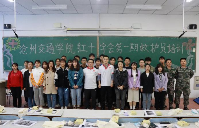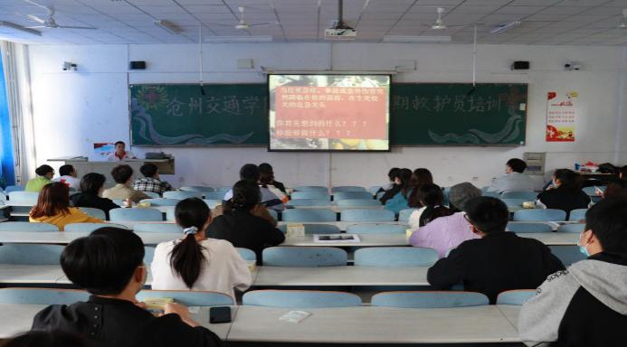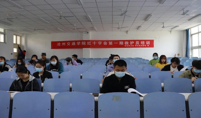 为弘扬“人道、博爱、奉献”的红十字精神,进一步提高同学们应对突发事件和意外伤害时的自救互救能力,ac米兰学生安全协会协同黄骅市红十字会开展了ac米兰官方网站第一期红十字会救护员培训。黄骅市人民医院李华清、黄骅红十字会何风等培训讲师受邀参加活动。