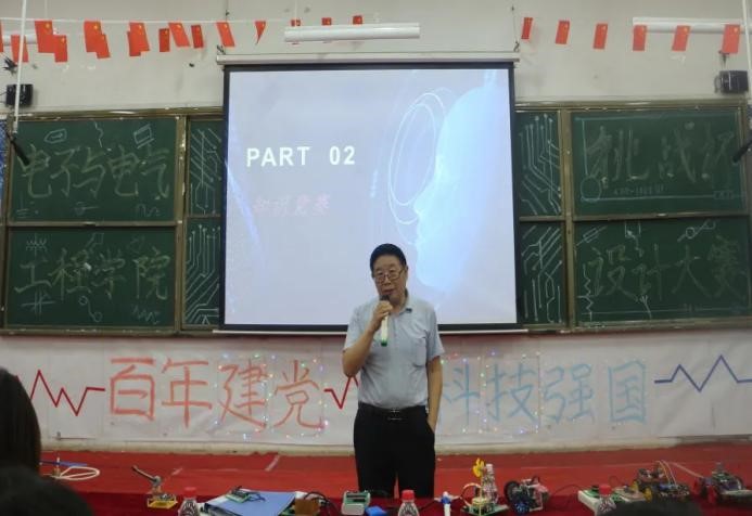 为培养ac米兰学生的创新意识,提高实践能力,感受科技乐趣,ac米兰电子与电气工程学院5月23日在知行楼A301成功举办以“百年建党,科技强国”为主题的首届科技“挑战杯”电子设计大赛。电子与电气工程学院院长李金平、团委书记李艳梅、17级辅导员李涛、科协指导教师赵莹及各参赛队伍的指导教师滕岳、陈静、项璟、张亚娟、陈剑美、殷文雪及轨道交通学院教师陈雷莅临本次比赛。