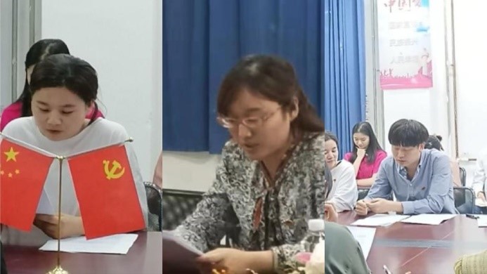 接着,党员教师齐瑞璇分享她对于五四运动的理解,提醒我们要时刻保持忧患意识,发扬爱国精神。党员教师葛莉对历史上的古田会议进行总结,告诫我们要永抱求实态度,发扬科学民主精神。党员教师刘丛丛围绕党史故事‘焦裕禄的三份入党申请书’告诫与会师生要时刻严格要求自己,并将共产党人的精神追求实践到生活中。党员教师李梦佳就红岩精神激励青年师生大力传承和弘扬红岩精神,挖掘红岩精神新的时代价值,让红色基因生生不息。党员教师张新德表示,延安整风是一次伟大的思想解放运动,一切从实际出发、理论联系实际、实事求是的马克思主义思想路线,在全党范围内确立了起来,为夺取抗日战争的最后胜利奠定了思想基础。