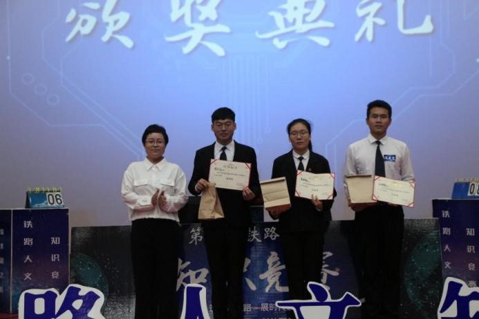 为加强对学生的人文精神教育,培养学生自主学习能力,鼓励学生寓学于乐,在建党百年之际,汲取奋进力量,ac米兰轨道交通学院于6月10日下午在天佑会堂举办以“筑求知之路,展时代之风”为主题的第三届铁路人文知识竞赛决赛。学生处处长王庆松,校团委书记、学生处副处长曹蒙春,轨道交通学院副院长刘志萍,轨道交通学院副院长聂正英,交通运输专业教研室主任刘作义,轨道交通信号与控制专业教研室主任段宝文及相关辅导员出席比赛现场。