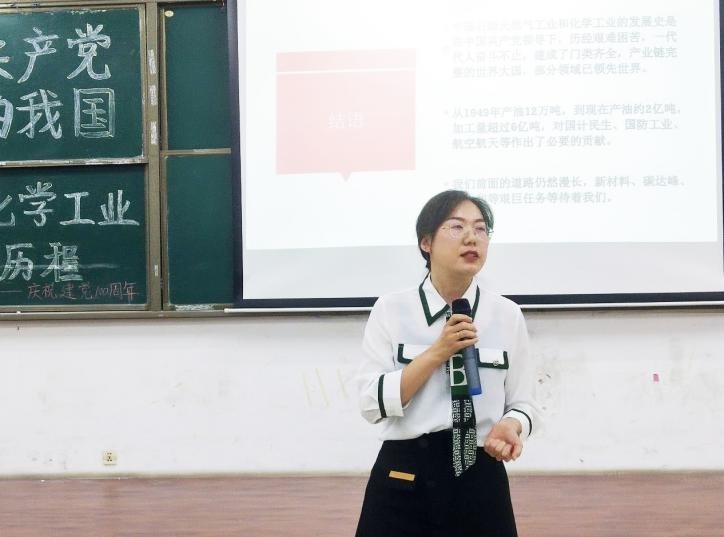 最后化工学院党支部组织委员许晓娟老师进行总结发言:“我们国家现在所取得的成就,是在中国共产党的正确领导下,一代代人的不懈奋斗,历经艰难困苦后取得的。此次讲座既是知识的传承,也是石油精神的传承。前辈们不怕苦、不怕累、有责任、有担当的宝贵精神,我们要好好的学习和传承下去。”