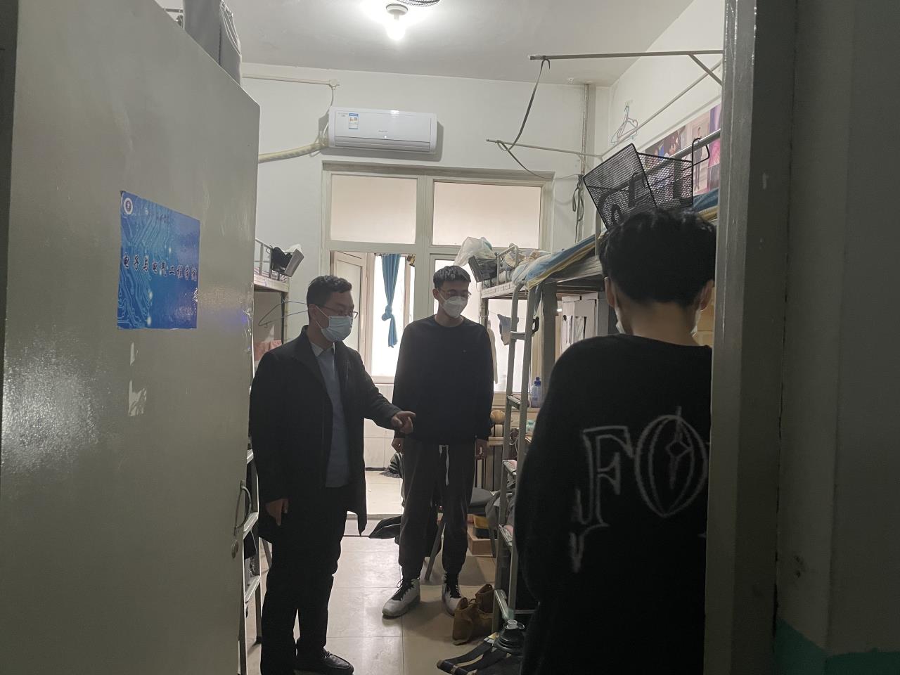 寝室是校园疫情防控的重要阵地,为更好地保障疫情防控期间学生的生活和学习环境,了解学生思想状态,建立一道坚实屏障,3月13日晚,电子与电气工程副院长董立伟组织全体辅导员进入学生宿舍进行疫情期间晚寝检查工作。重点针对宿舍内的卫生、大功率电器等方面进行指导,叮嘱学生要严格按照学校防疫工作通知要求,配合学校做好相关防疫工作。特殊时期,不要随意外出,注意个人防护。
