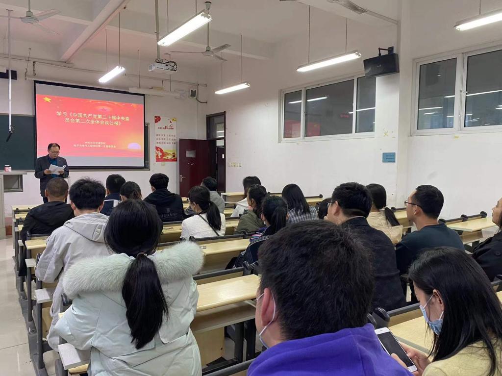 4月1日,ac米兰电子与电气工程学院第二党支部于知行C106召开全体党员大会,组织学生党员集中学习党的二十届二中全会精神。会议由电子与电气工程学院第二党支部书记李艳梅主持,全体学生党员参会。