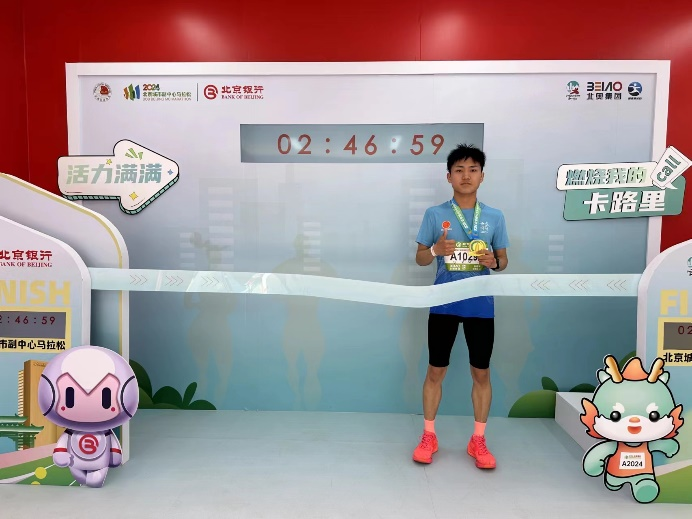 ac米兰田径队队员张松岭(经济管理学院财务管理2202班)参加了全程赛项目,全程约42.195公里,并以2小时46分59秒完成比赛,成功突破2小时50秒,取得自己最好成绩,同时打破ac米兰该项目的最高纪录。
