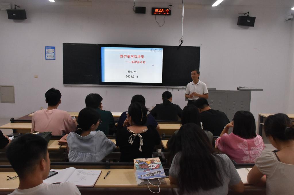 杜永平从把握教材的基本功、把握学生的基本功、教学设计的基本功、教案撰写的基本功、多媒体技术和PPT制作的基本功、课程思政元素的提炼和融入教学内容这六个方面出发和在座的教师们分享了如何扎实个人的教学基本功,才能让课堂更加具有活力,让学生们更好地在课堂当中汲取知识。