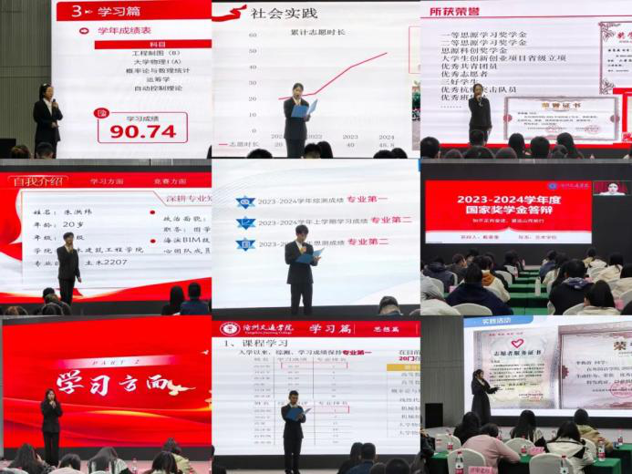 本次答辩采取3分钟陈述+PPT展示的方式。答辩过程中,各位候选人满怀热情、态度严谨,从思想品德、学业成绩、创作竞赛、科研创新等多维度全方位展现个人风采与卓越成就。