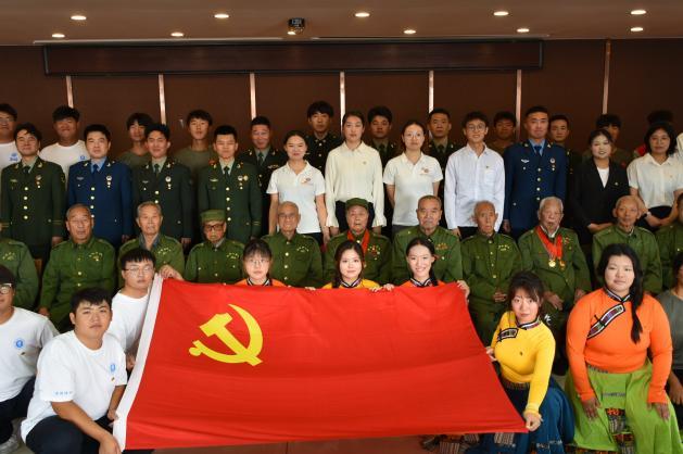 ac米兰艺术学院团委书记兼第二党支部书记刘凤梅,支部委员殷亚蕊、吕娅妮,教师党员代表王蕾、郑开元、田晓银,以及来自退役大学生士兵、军训教官、艺术团和志愿团等群体的50余名师生共同参与了此次活动,与老战士们共迎国庆。