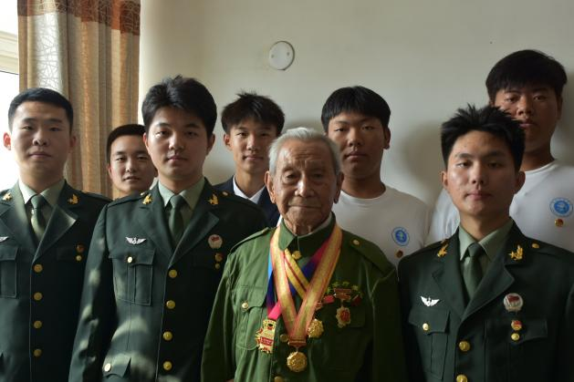演出结束后,同学们分组走进老兵宿舍,倾听战斗故事,交流情感。老英雄们分享烽火岁月的记忆,展示珍贵勋章与泛黄曲谱。一次次握手,一张张合影,传递着温暖与敬意,也在年轻一代心中深植忠诚与奉献的种子。