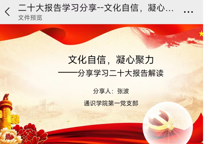 为深入学习党的二十大精神,通识教育学院第一党支部于2022年11月15日在线上召开了主题为《奋进新征程、建功新时代》的党支部学习会,并邀请了通识教育学院党总支书记王小红参会。