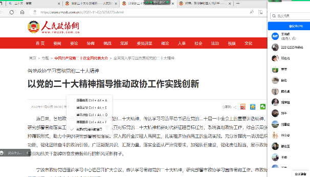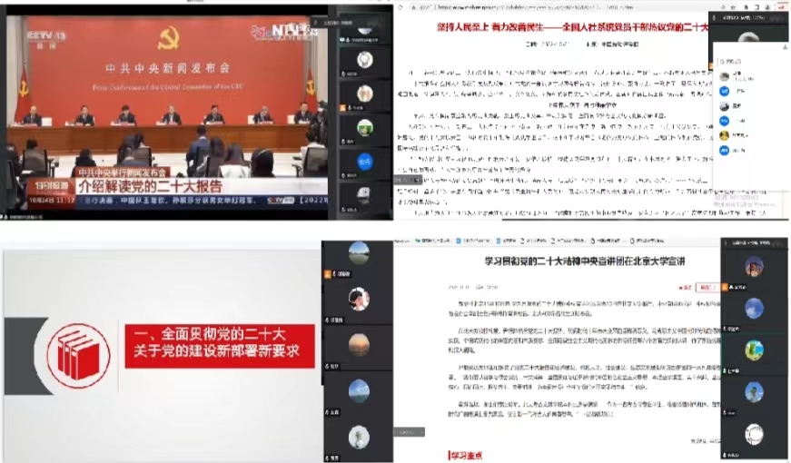 12月8日,经济管理学院第一党支部以线上会议的形式组织教师党员学习文章“以党的二十大精神指导推动政府工作实践创新”,激励教师党员深刻把握党的二十大主题,理解新时代新征程中教师的使命任务,联系实际,以学习促共识,坚持学以致用,以党的二十大精神为指导推动教育工作实践创新,为教育事业的发展贡献力量。