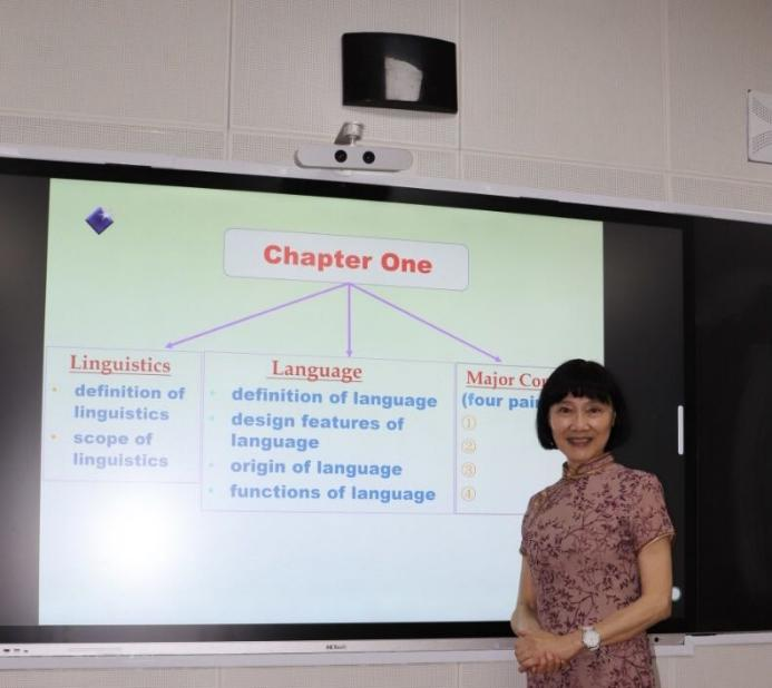 得益于这些知识和技能,她的授课颇有特色,不照本宣科,不枯燥乏味。比如,在《学位论文写作》课堂上,她列举很多自己求学过程中亲身经历列举前几届学生论文写作的实例真实,生动的讲解使学生们了解论文写作该做和不该做的规则。在晦涩枯燥的《语言学概论》课上,总是能穿插一些简单易懂的实例进行阐释,使讲解具有层次,学生明白易晓。在语言理解难度较大的《高级阅读》课上,她常常抛出思考题给学生打开思想的世界,给学生们展示和分享个人理解和观点的机会,师生互动,生生互动,带给学生丰富深刻的学习体验这一教学风格深受学生喜爱。同学们说是一名“业务精湛”的好老师坚实的专业理论和多年外贸公司的工作经历使她站在讲台上充满自信,学生们是“吃这套”的。